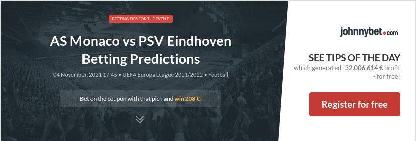 Thursday 4 November 2021. Match prediction and football betting tips for AS Monaco vs PSV Eindhoven UEFA Europa League 2021-22. PSVs most recent games have seen even more goals as 12 goals have been scored in their last two games.